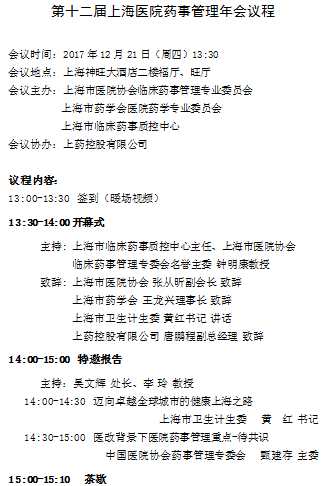 第十二屆上海醫院藥事管理年會議程