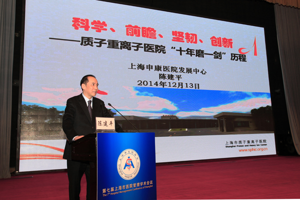陳建平主任作“質(zhì)子重離子醫(yī)院‘十年磨一劍’歷程”的主題報告