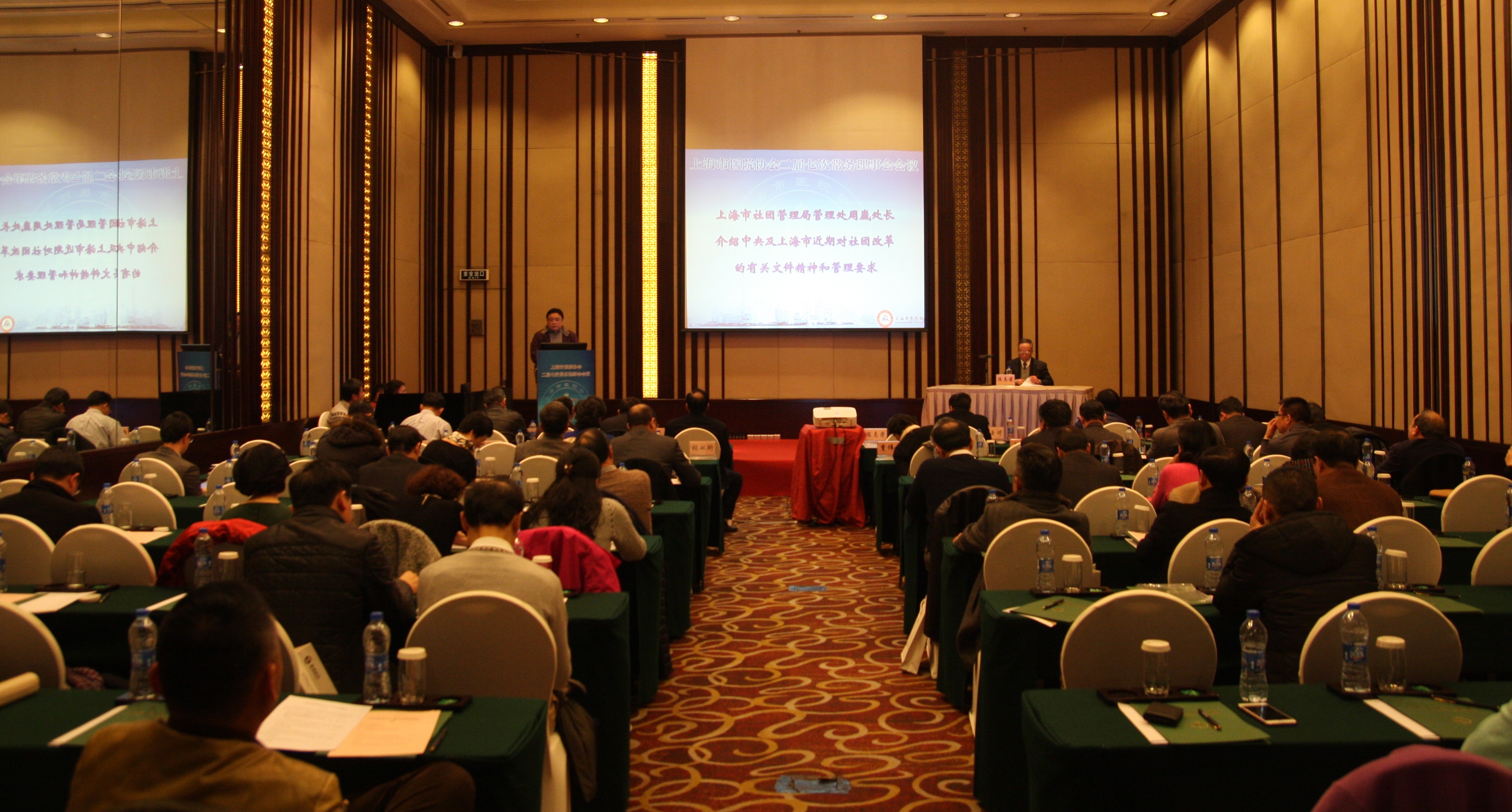 上海市醫(yī)院協(xié)會二屆七次常務(wù)理事會會議于2015年12月29日召開,應(yīng)到96人,實(shí)到79人,符合規(guī)定的人數(shù)。上海市社團(tuán)管理局管理處周崴處長、章震球科長、上海市醫(yī)事團(tuán)體聯(lián)合管理辦公室徐本明副書記應(yīng)邀出席會議。陳志榮會長主持了會議。