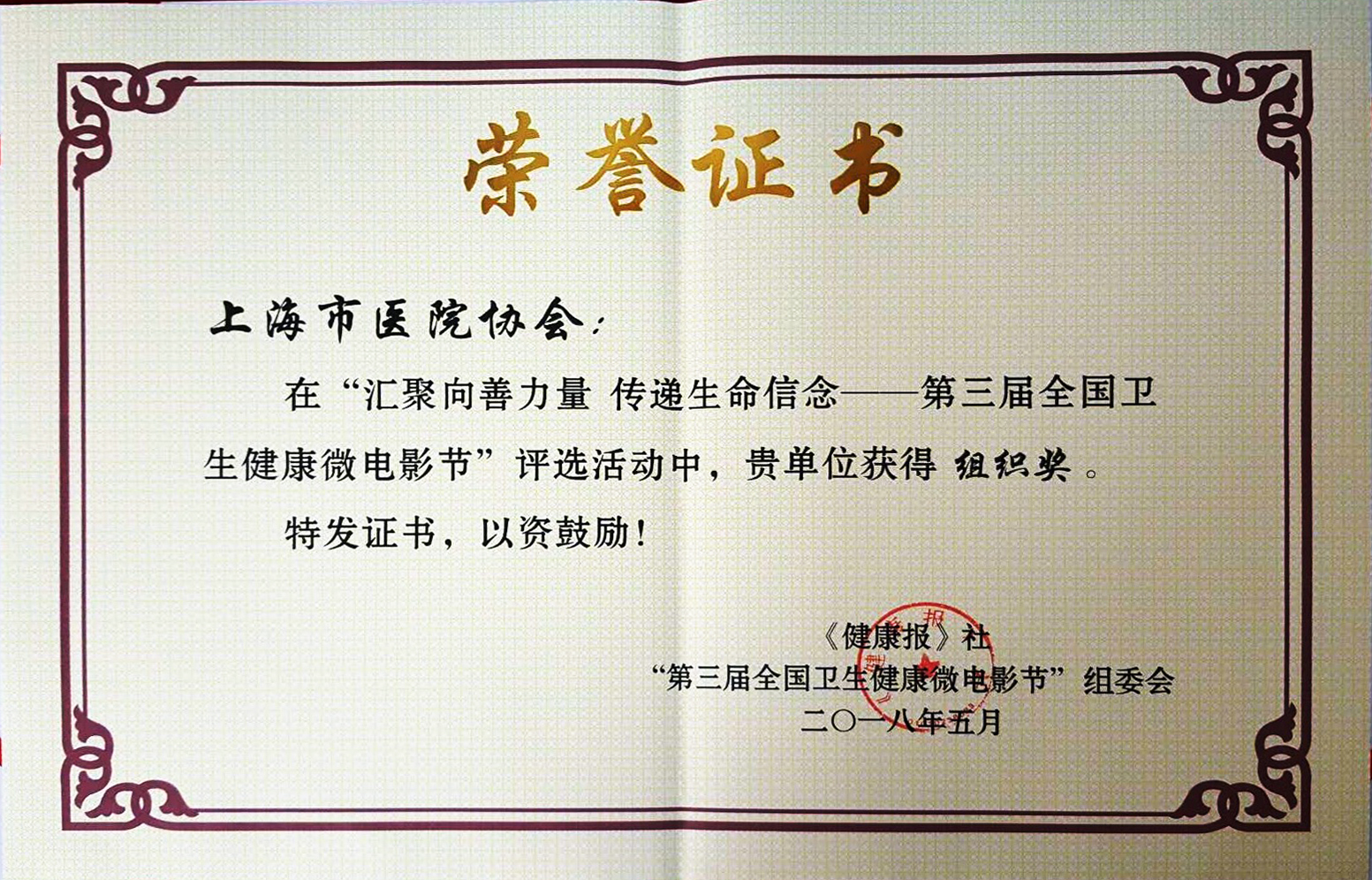 獲“第三屆全國衛(wèi)生健康微電影節(jié)”組織獎(jiǎng)