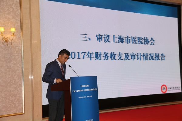 會議審議并一致通過了上海市醫(yī)院協(xié)會2017年工作報告、2017年財務(wù)收支及審計情況報告、2018年工作要點、2018年度預(yù)算、《上海市醫(yī)院協(xié)會專業(yè)委員會年度考核內(nèi)容及評分標準》和協(xié)會新制訂、修訂的8項規(guī)章制度。表彰了上海市醫(yī)院協(xié)會2017年度先進集體、表揚集體和先進個人。表決通過了增補馬恰怡等13位同志為第三屆理事會理事、增補鄧海巨等13位同志為第三屆理事會常務(wù)理事、取消宋志紅本會會員及第三屆理事會理事資格。