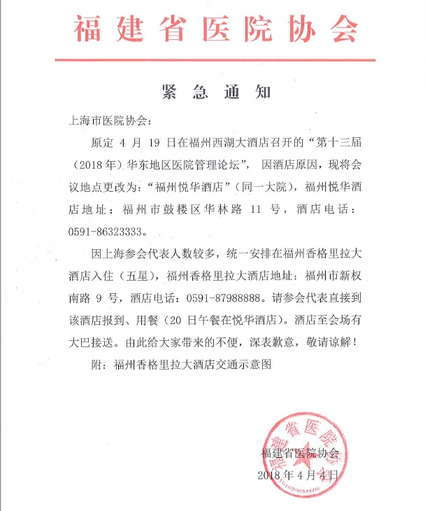 第十三屆(2018年)華東地區(qū)醫(yī)院管理論壇上海代表緊急通知